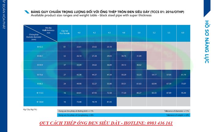 Dựa vào tiêu chuẩn và kích thước mà nhà máy Ống Thép Hòa Phát sẽ đưa ra quy cách thép ống đen khác nhau như sau